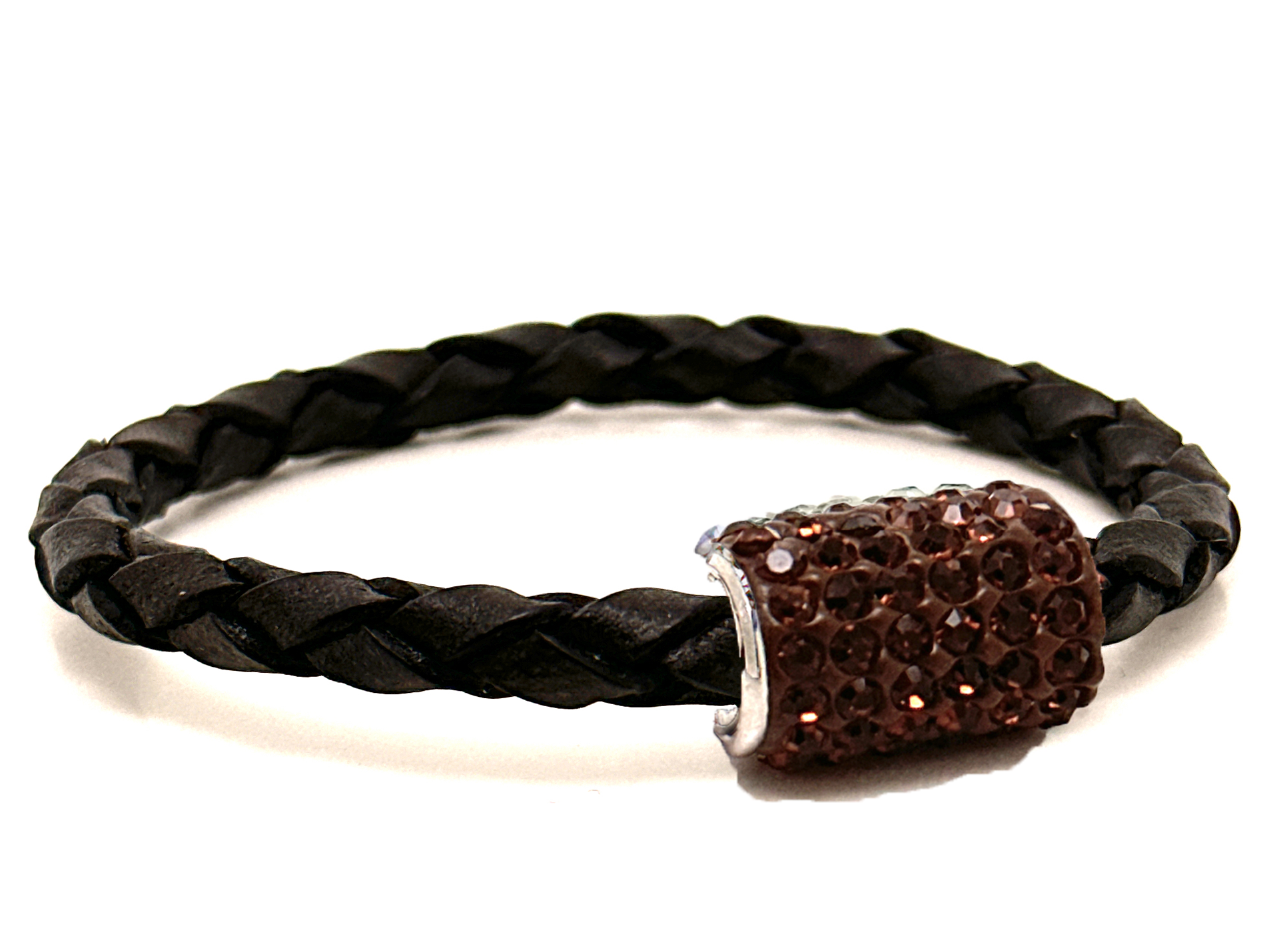 Necklace Intreccio Black Magnetic Closure Brown Crystals
