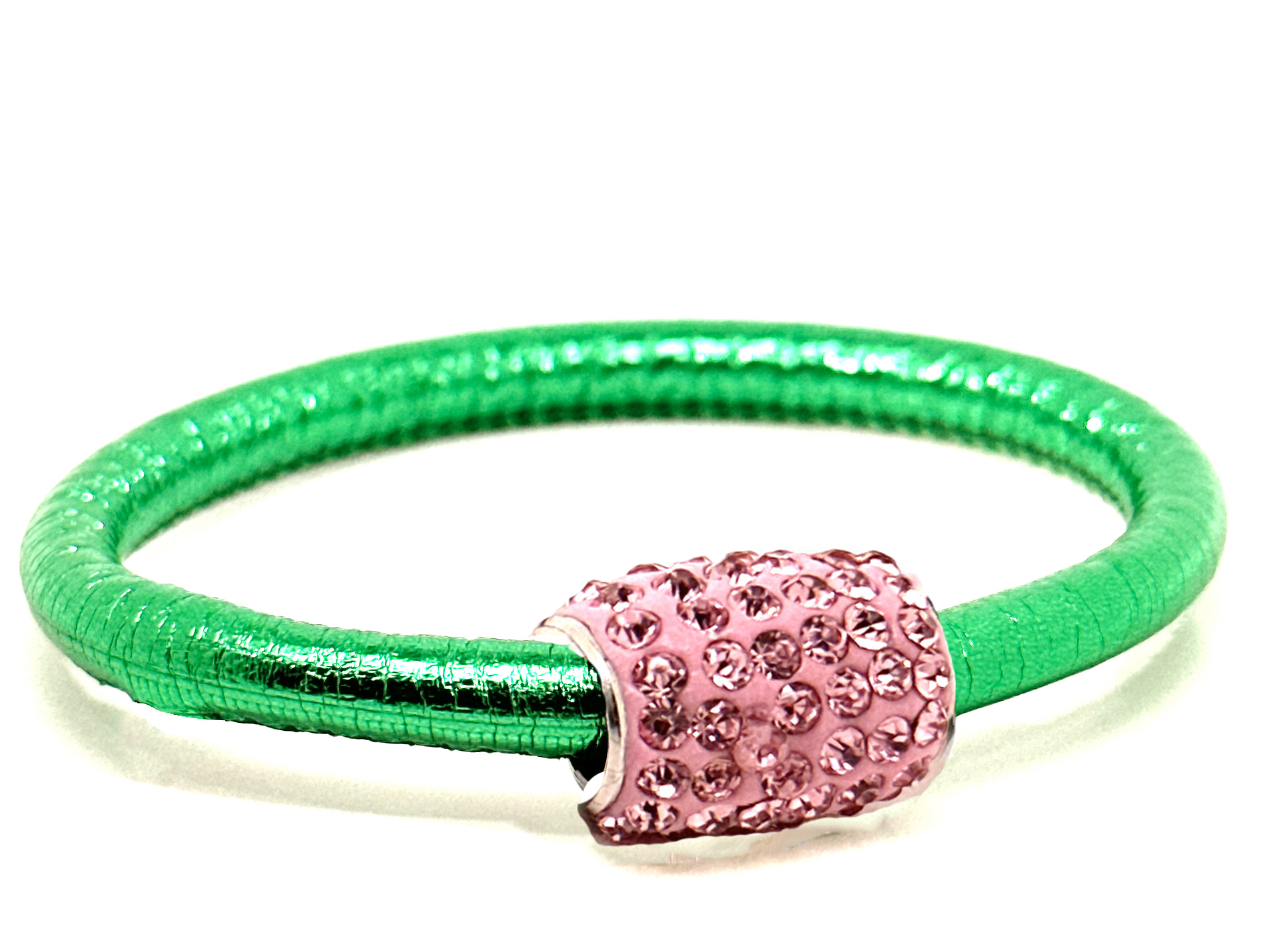 Necklace Party Green Magnetic Closure Pink Crystals  40 cm