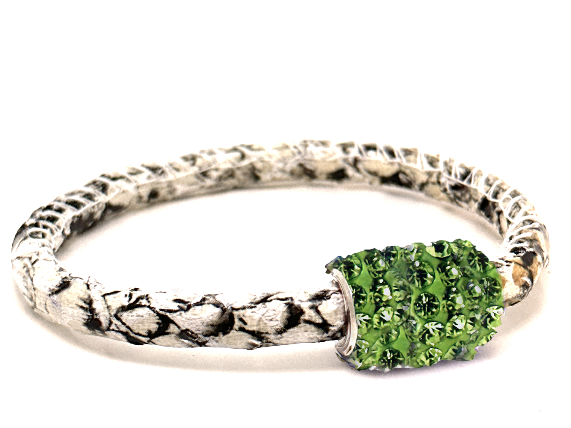 White Snake Bracelet Magnetic Closure Grey Crystals