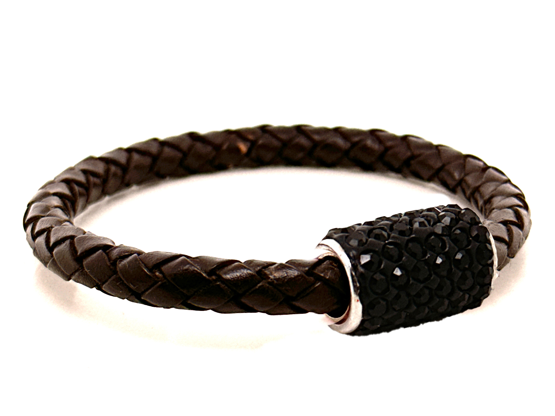 Braccialetto Intreccio Chocolate Chiusura Magnetica Cristalli Nero