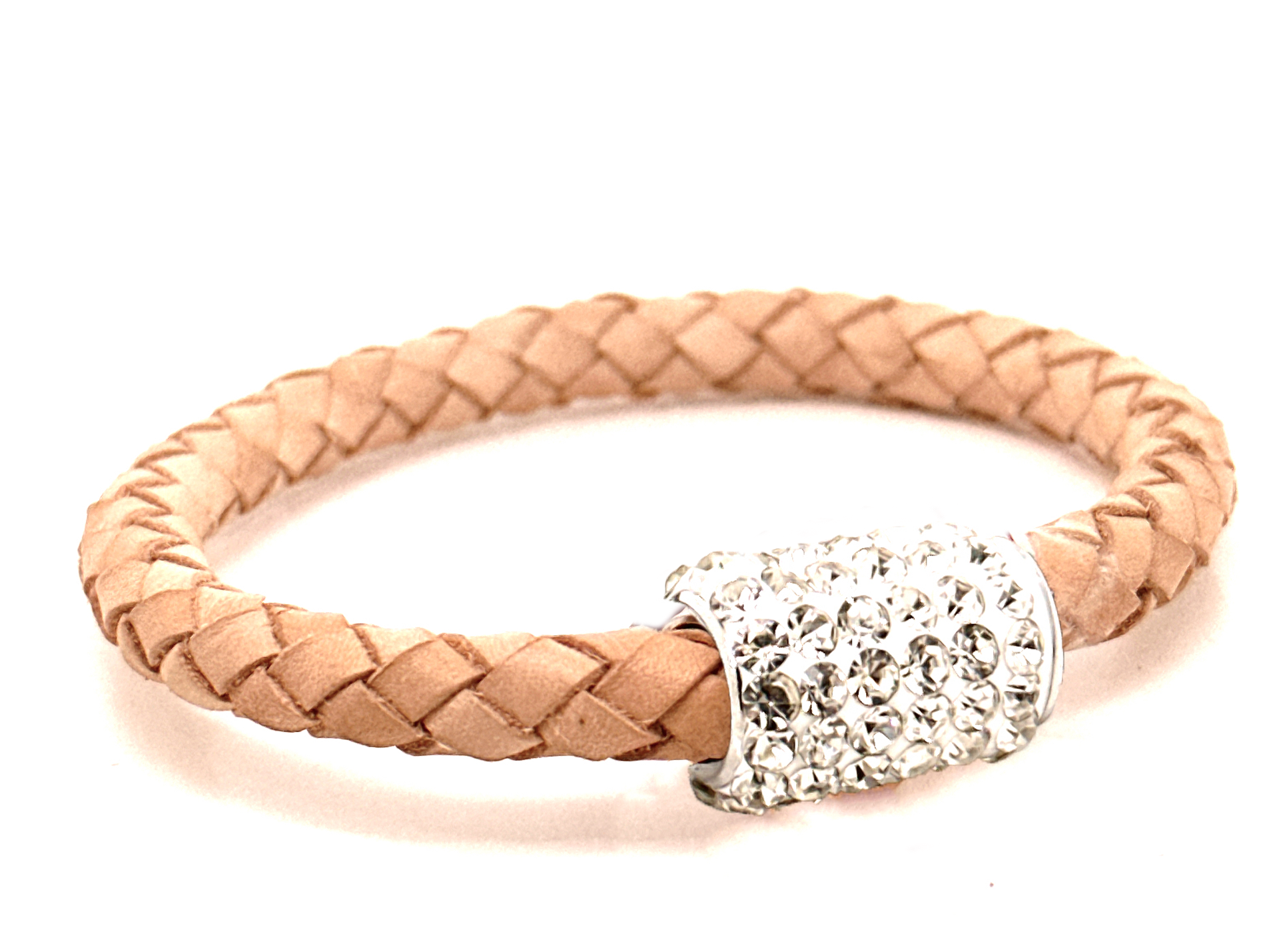 Braccialetto Intreccio Cookie Chiusura Magnetica Cristalli Bianco