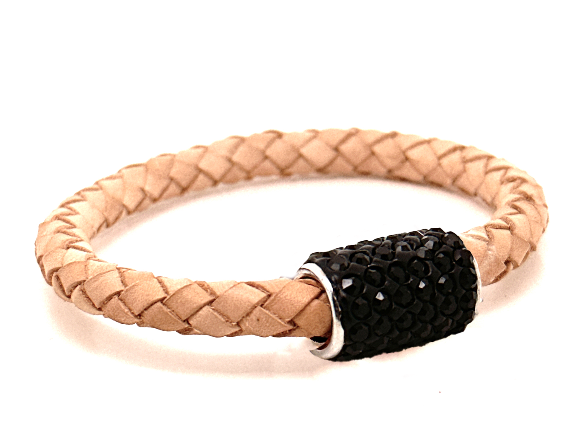 Braccialetto Intreccio Cookie Chiusura Magnetica Cristalli Nero