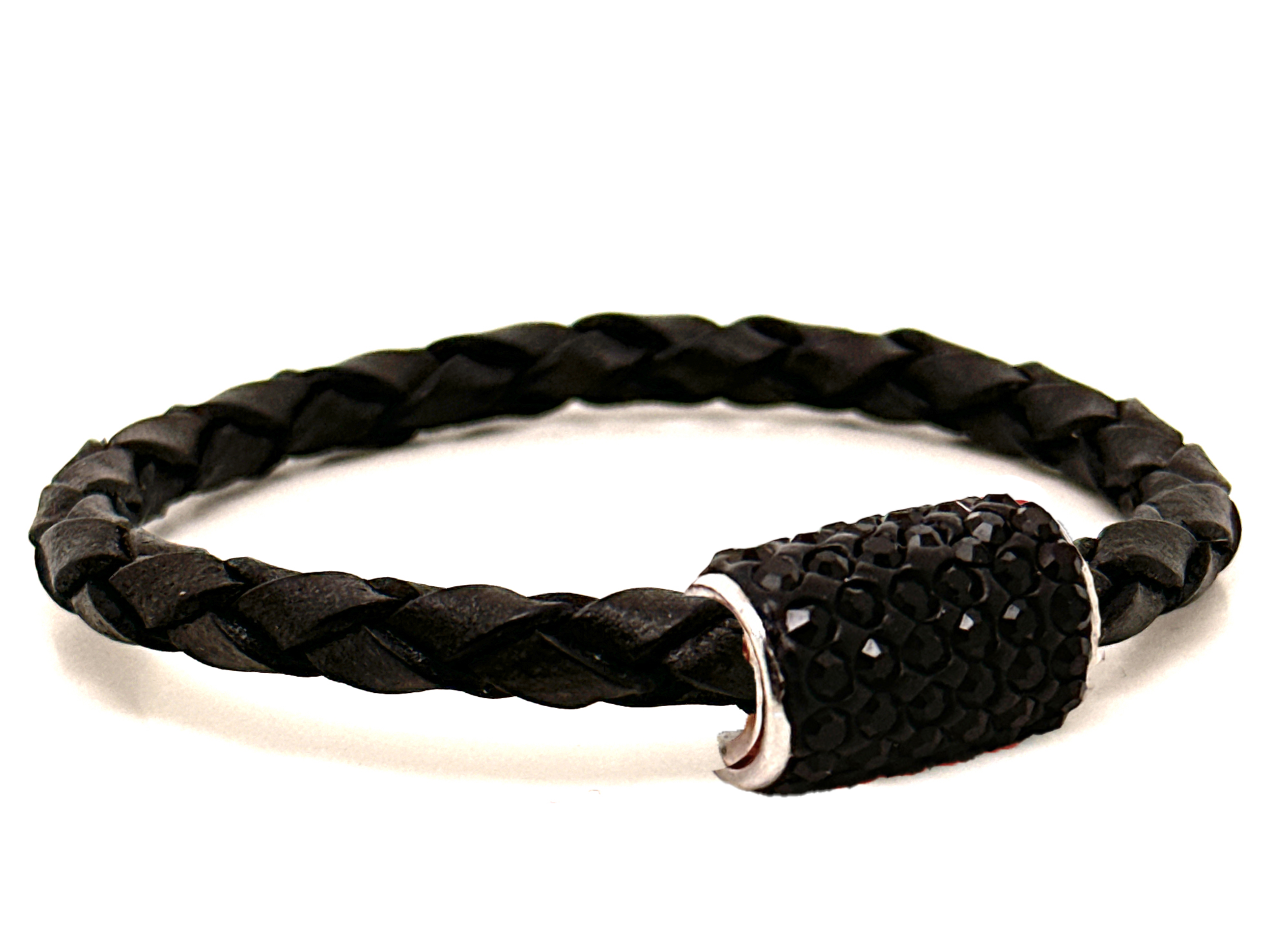 Braccialetto Intreccio Nero Chiusura Magnetica Cristalli Neri