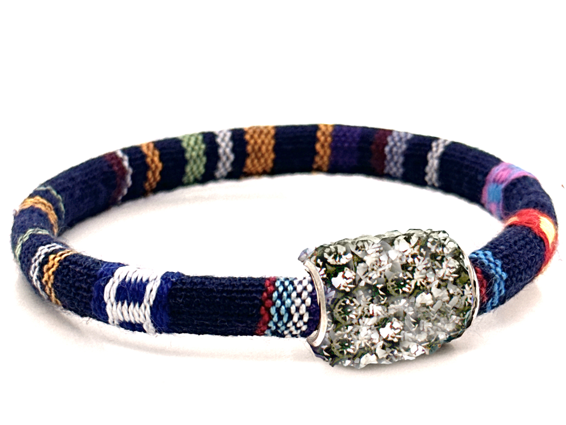 Braccialetto Kilim Navy Chiusura Magnetica Cristalli Grigio Perla