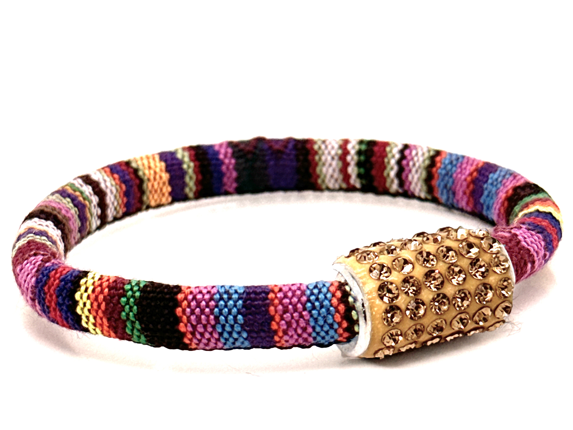 Braccialetto Kilim Rainbow Chiusura Magnetica Cristalli Giallo Chiaro