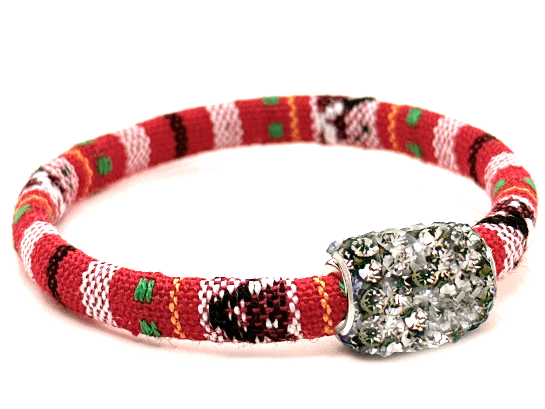 Braccialetto Kilim Red Chiusura Magnetica Cristalli Grigio Perla