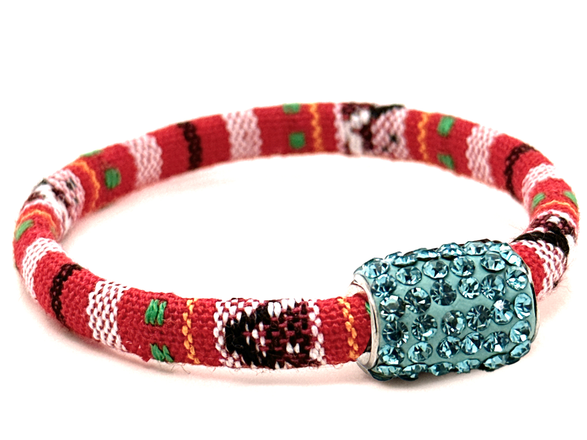 Braccialetto Kilim Red Chiusura Magnetica Cristalli Turchese