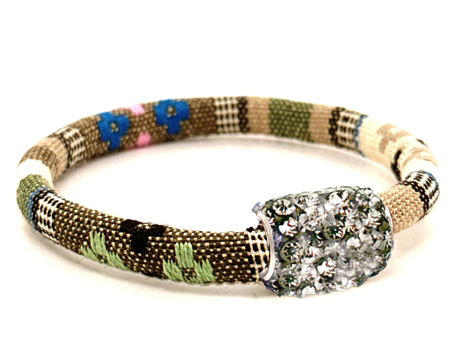 Braccialetto Kilim Sand Chiusura Magnetica Cristalli Grigio Perla
