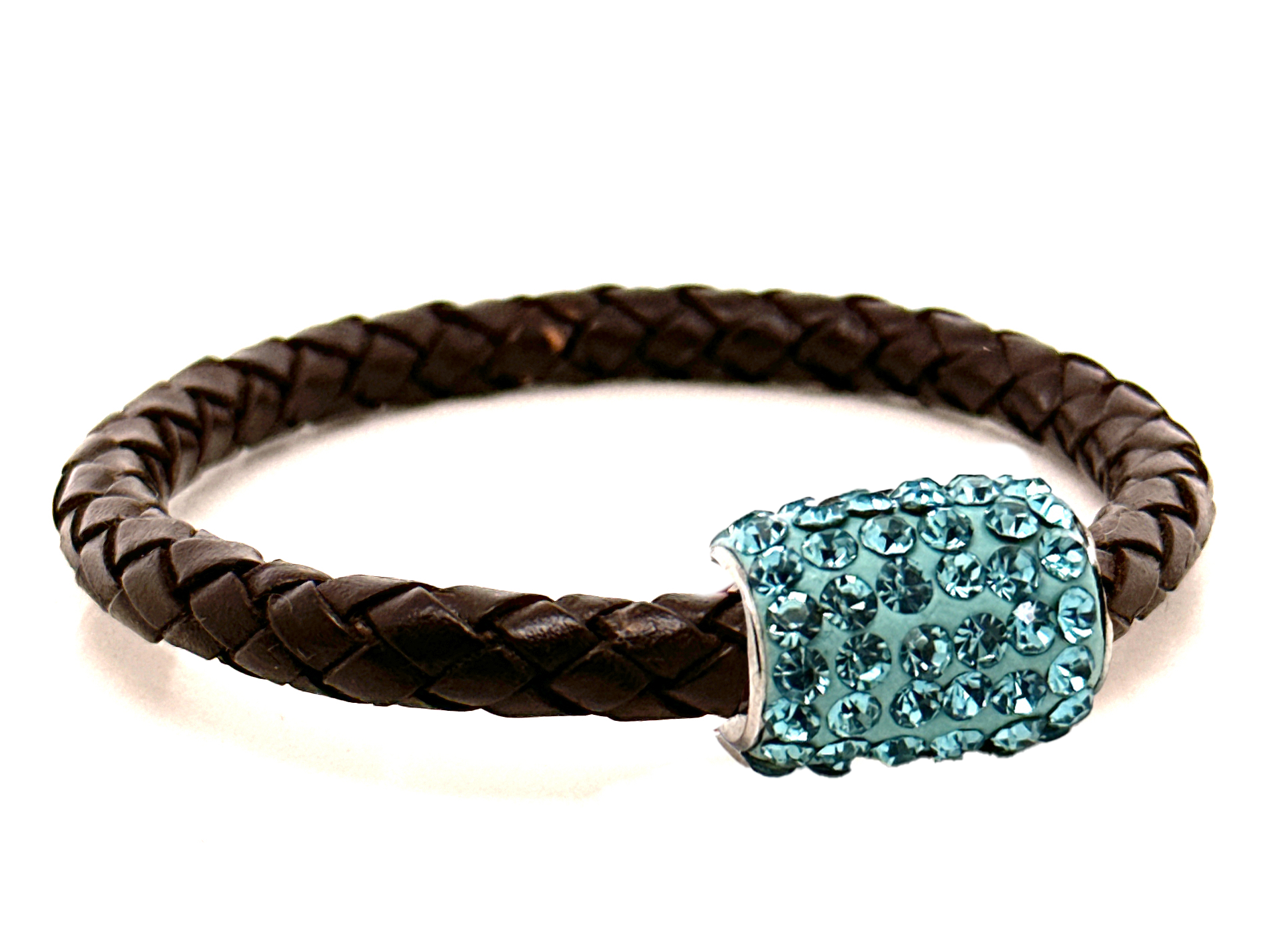Girocollo Intreccio Chocolate Chiusura Magnetica Cristalli Turchesi 40 cm.
