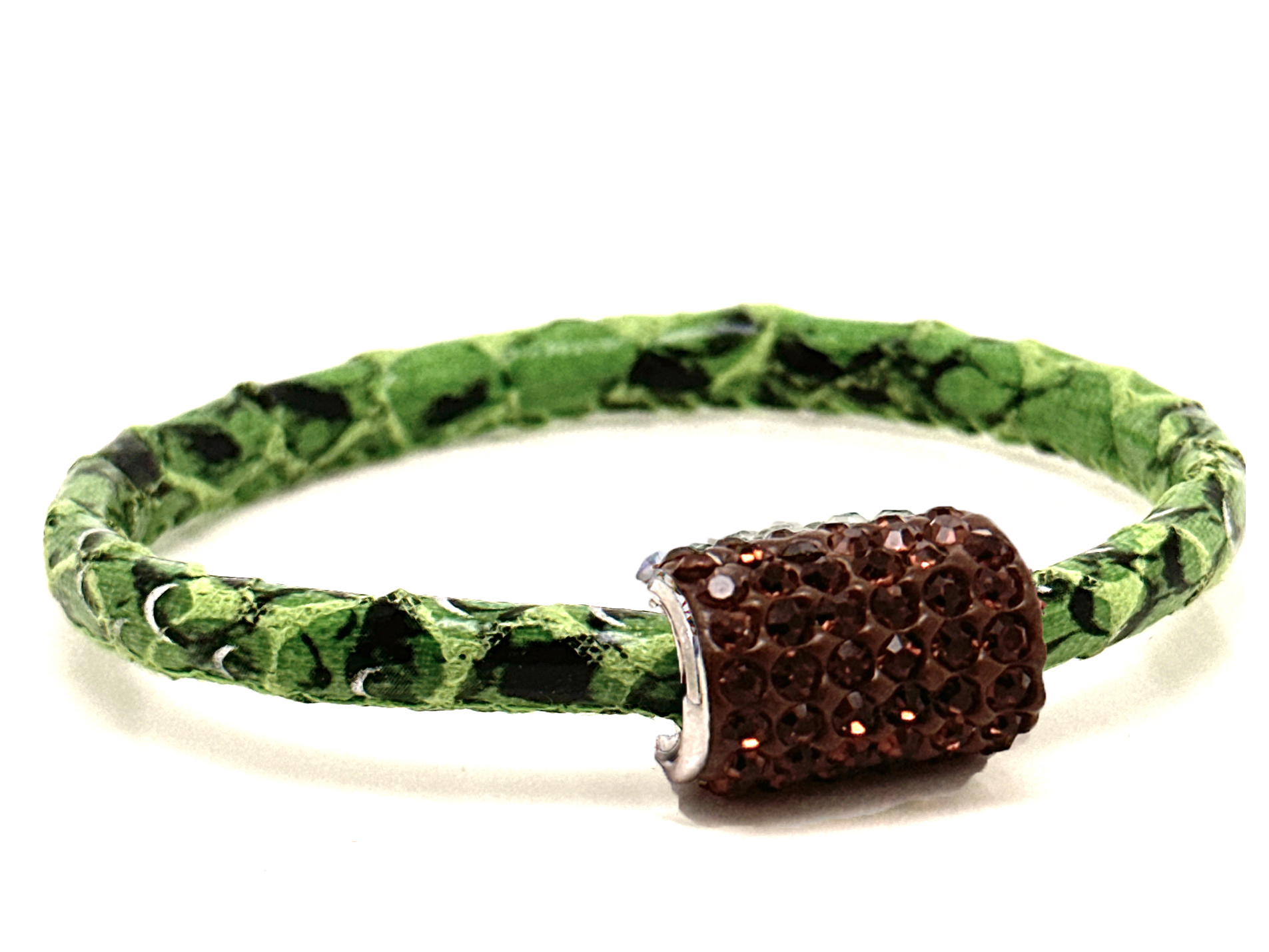 Girocollo Snake Green Chiusura Magnetica Cristalli Marrone 40 cm.