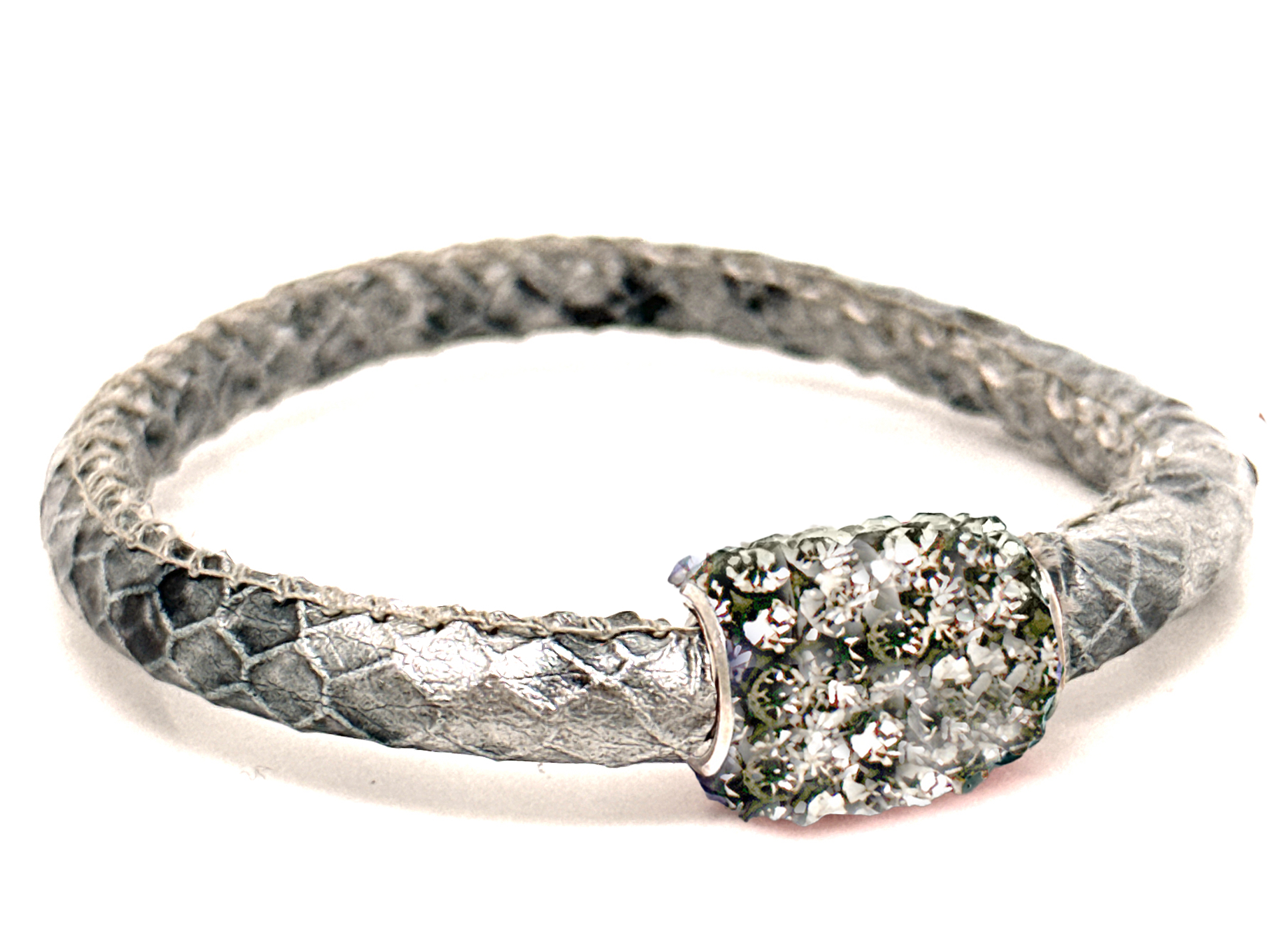 Girocollo Snake Silver Chiusura Magnetica Cristalli Grigio Perla 40 cm.